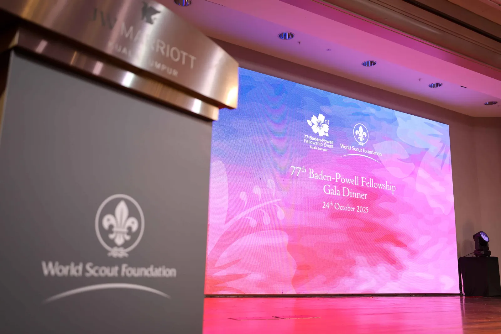 The 77th Baden-Powell Fellowship Event, Gala dinner was held in Kuala Lumpur, Malaysia, 25 October 2025, 500 guests — BP Fellows, Scouts and distinguished guests gathered at the Mayang Sari Ballroom of the JW Marriott for a night of celebration and purpose. 72 BP Fellows including 11 Honours Programme Members (including couples — a total of 17 individuals), were welcomed into the BP Fellowship by our Honorary Chairman, HM The King of Sweden and our new Chair, Beat Wenger, with 43 coming from Malaysia!